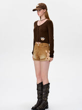 Cuffed A-Line Denim Shorts