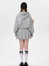 A sweet and casual embroidered cropped hoodie featuring a relaxed fit and versatile design, perfect for everyday wear.