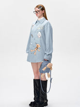 A fashionable mid-length shirt jacket featuring colorful graffiti-inspired illustrations, combining creativity and comfort for a trendy look.