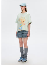 This is a Skipping Bear Crew Neck T-shirt. It features a cute skipping bear design, adding a lively and playful touch to your wardrobe. The fabric is made of 100% cotton for comfort, and the lining is 100% polyester for durability.