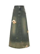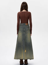 This high-quality A-line denim skirt features a unique split deconstructed design, offering a modern and versatile style perfect for various occasions.