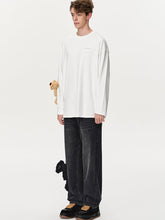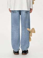 These vintage-style straight-leg jeans are made from 100% cotton, offering a soft and comfortable fit. The attached bear plush adds a playful touch, perfect for casual and stylish looks.
