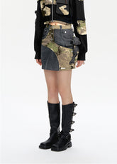 Camo Denim Short Skirt