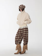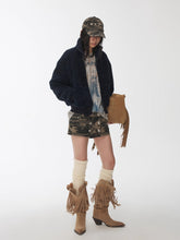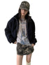 Designed in a fitted cropped silhouette, this shearling-textured jacket ensures a sleek and structured look while maintaining comfort and warmth. The double zipper front allows adjustable styling, from casual layering to a high-neck silhouette. The cuffs and hem feature a creative distressed rib-knit finish that adds a touch of streetwear edge to the soft wool-touch texture. Made from high-quality faux shearling with a cotton-like hand feel, the fabric is lightweight yet insulating, blending warmth with everyday versatility.