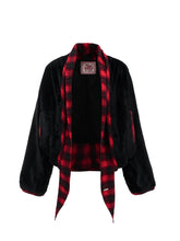 Short Color-Block Rabbit Fur Tie Jacket
