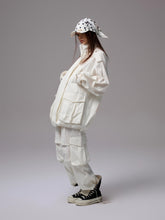Crafted from pure cotton fabric with sand-washed jacquard embroidery, these pants are durable and unique. The detachable waistband with metal zipper allows free switching between cargo pocket style and base style. Balloon silhouette with pleated knees enhances the relaxed street vibe. Adjustable hem straps and branded custom metal buckle add detail balance for versatile styling in both urban and casual wear.