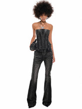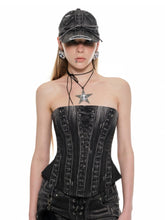 1 Jinn Studio,Denim Blue & Black Printed Fishtail Corset