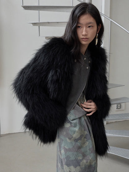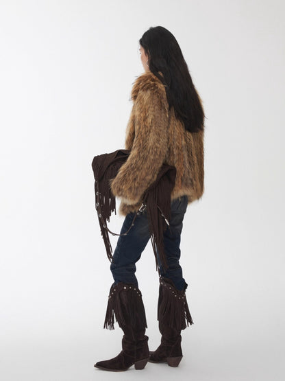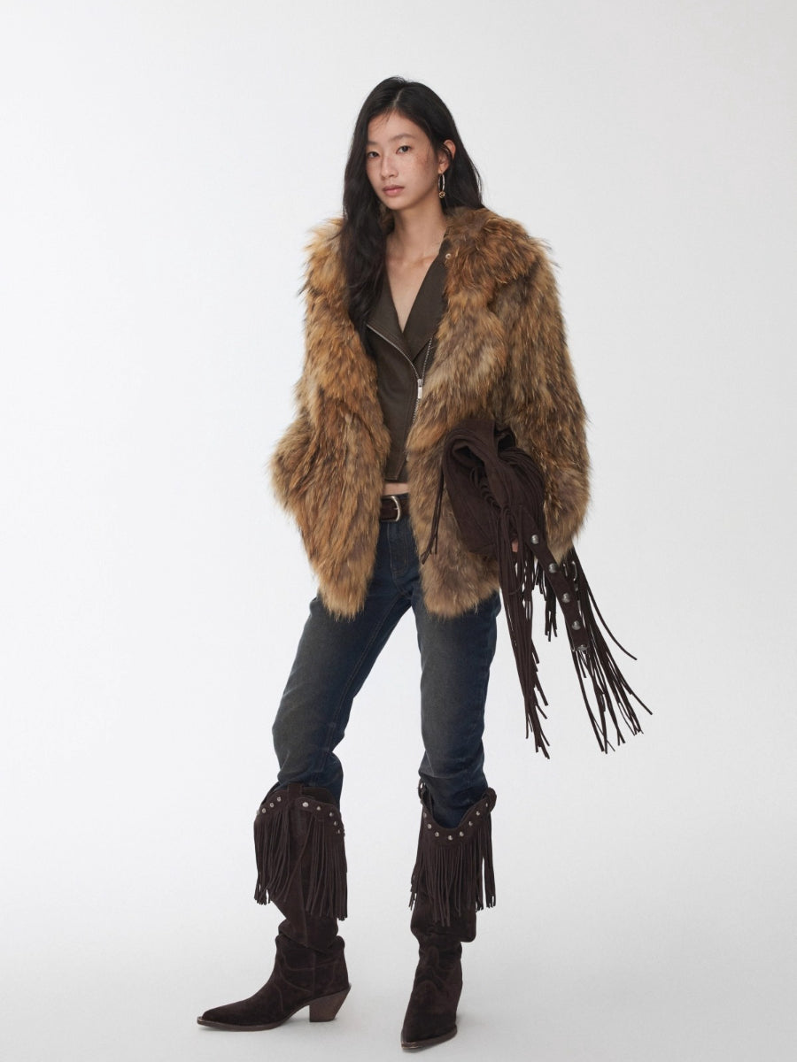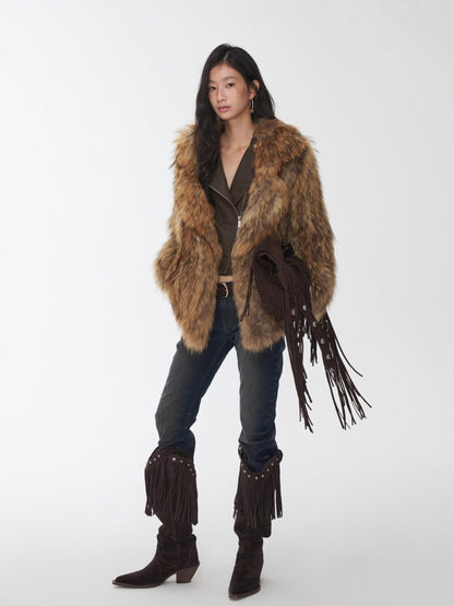 Heavycrafted Racoon Fur Knit Lapel Fur Coat