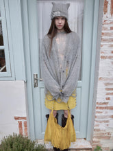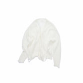 This relaxed open cardigan is knitted from a fluffy mohair-wool blend yarn that feels naturally soft and light on the skin. Multi-ply yarn and airy laddered stitches create a semi-sheer, star-inspired pattern with subtle dimension and texture. The loose, drop-shoulder silhouette and open front make it easy to throw on over vests, tees, or dresses for a laid-back layered look. Dyed in a clear sky-tone hue, it catches the light beautifully while keeping the overall vibe effortless and cozy.