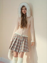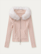 Detachable Fur Collar Blush Zip-up Knit Cardigan
