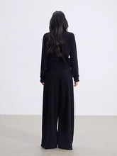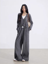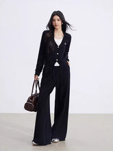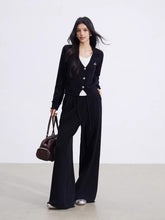 This two-piece knit set features a cropped faux-layered top paired with relaxed wide-leg pants, combining effortless structure with soft drape. The contrast knit construction creates visual depth while maintaining a clean, casual silhouette suitable for daily wear. Thoughtful details at the hem and seams enhance the overall texture, making the set easy to style together or separately for versatile spring outfits.