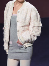 This refined two-piece set blends casual luxury with timeless structure — a textured tweed bomber jacket paired with a soft, fitted dress. The jacket’s drop shoulders and relaxed silhouette contrast beautifully with the clean lines of the inner dress, creating a balanced modern look. The combination of wool-blend tweed and smooth polyester lining ensures both warmth and comfort, making it perfect for autumn outings or elevated everyday wear.
