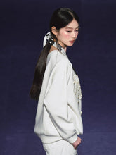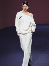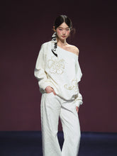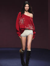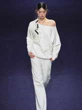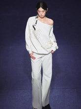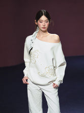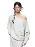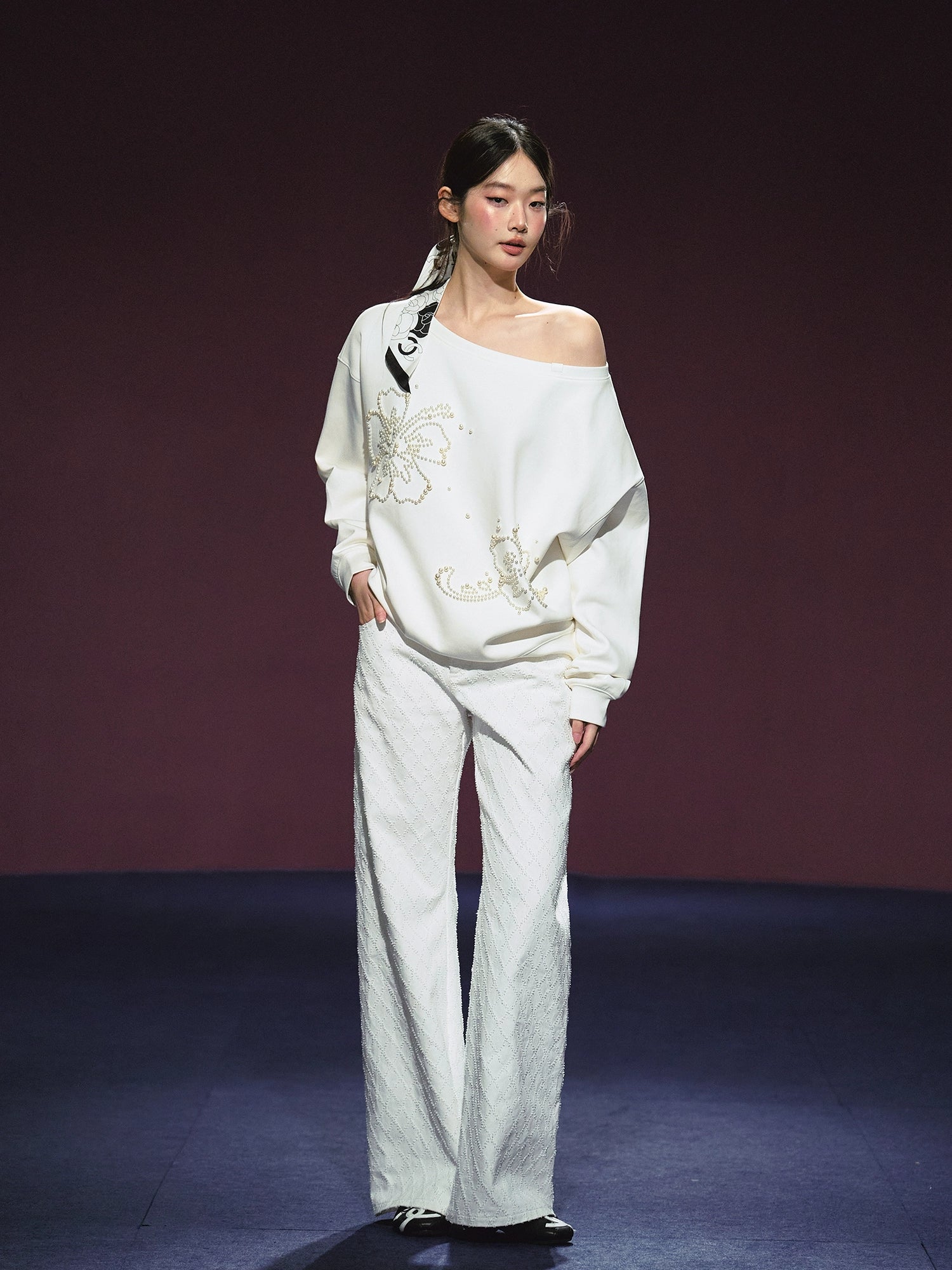 A statement piece that blends contemporary elegance with casual ease. This pearl-embellished sweatshirt features a convertible off-shoulder neckline that can be worn asymmetrically or straight for versatile styling. Crafted from a soft cotton blend, it offers a structured yet comfortable silhouette with a relaxed, effortless drape. Perfect for pairing with denim or tailored bottoms to elevate everyday looks with a touch of understated glamour.