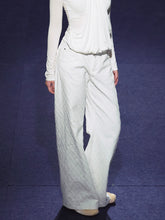 These pants feature a wide waistband, double buttons, a diamond check pattern and a straight-leg design.