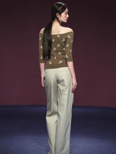 A chic off-shoulder knit top featuring a delicate mosaic floral pattern and an elegant, body-hugging silhouette. Crafted with blended fibers for a soft touch and subtle sheen, it highlights the neckline gracefully while adding a sophisticated modern charm. Designed to be both flattering and comfortable, perfect for pairing with skirts or tailored trousers for a refined look.