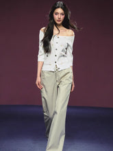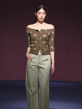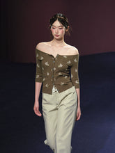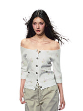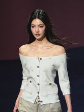 Floral Pattern Off-shoulder Mosaic Knit Cardigan