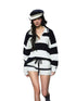 A nautical-inspired set featuring a relaxed stripe polo sweater and matching skirt-pants. Detailed size charts for both top and skirt-pants included.