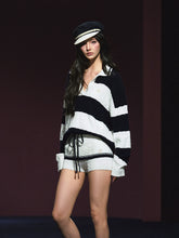 Nautical Relaxed Stripe Polo Sweater & Shorts Set