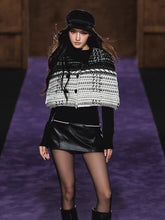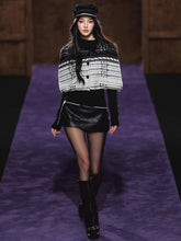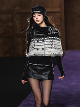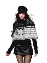 Textured special-yarn cape layered over a slim knit base top for clean lines and balanced structure. The cape features a sculpted collar height and generous hem sweep; the inner top refines the silhouette with neat shoulders and long sleeves. Works for campus, office, or travel—wear together or style the base top solo. Practical touches include stable knit construction and easy layering proportions.