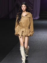 A modern take on the classic trench, this hooded coat is crafted from ultra-soft suede-effect fabric and finished with delicate metal stud detailing. The cinched waist and balloon-style hemline create a flattering, sculpted silhouette, while the mid-length design balances sophistication and ease. With its smooth polyester lining and structured tailoring, it brings both comfort and statement appeal to transitional weather styling.
