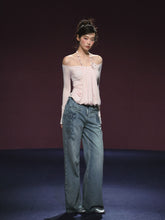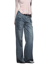 Beaded Embroidery Wide-Leg Straight Jeans