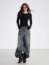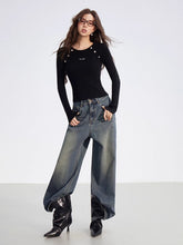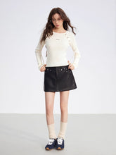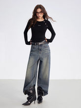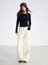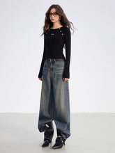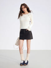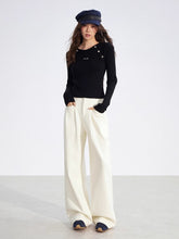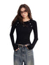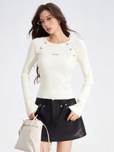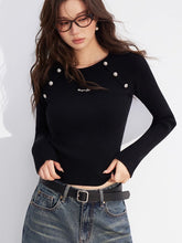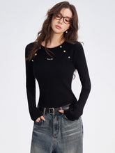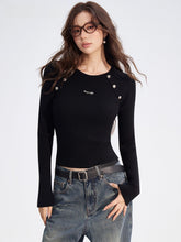 Crafted from a soft ribbed knit fabric, this top features a clean two-tone splicing design with vertical stripes and raglan sleeves for a flattering silhouette. Detailed with metallic button embellishments, it blends comfort with subtle sophistication. Perfect for layering or wearing solo, it elevates everyday looks with an understated touch of luxury.