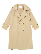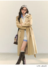 A stylish and sophisticated khaki long trench coat featuring heavy embroidery and a classic collar. This British style coat adds a touch of elegance to your wardrobe, perfect for the autumn and spring seasons.
