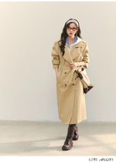 Product Name: Khaki Embroidered Collar Khaki Long Trench Coat