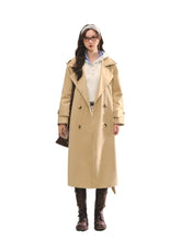 Khaki Embroidered Collar Khaki Long Trench Coat