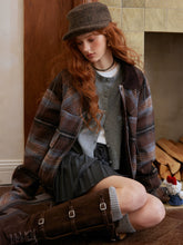 A vintage-inspired plaid wool-blend jacket combining warmth, texture, and effortless sophistication. Crafted from a soft and structured fabric blend, the coat features a classic lapel collar and a relaxed silhouette for easy layering. The plaid pattern enhances its timeless appeal, while the built-in padding ensures lightweight insulation without bulk. Functional patch pockets add practicality, making it suitable for both casual and refined everyday looks.