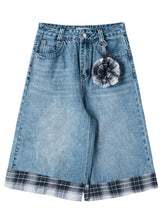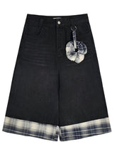 Checkered Patchwork Color-Blocking Wide-Leg Pants Set