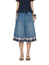 These wide - leg pants are made of high - quality fabric, which is comfortable and breathable. The checkered patchwork and color - blocking design make them unique and fashionable. They can be paired with a simple top for a stylish look.