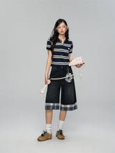 Product Name: Checkered Patchwork Color-Blocking Wide-Leg Pants Set