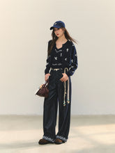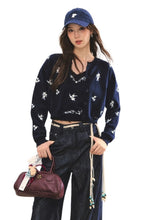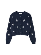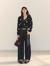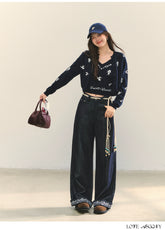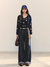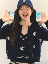 100% cotton knit feels soft and breathable with a light natural stretch for easy movement. The cropped cardigan is slightly loose with a gentle drop shoulder to soften the arm line and layer cleanly; the camisole’s V-neck subtly elongates the neckline for a slimmer face shape. White floral embroidery is the highlight—placed at collar, placket and hem with scattered accents for a crisp, retro-yet-girlish charm. A versatile two-piece set that styles together or separately.