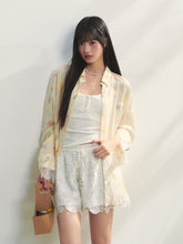 Product Name: Lace-trimmed Floral Print Long-sleeve Shirt