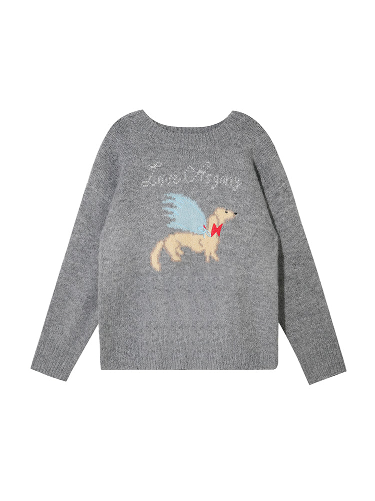 Animal Jacquard Embroidered Knit Sweater