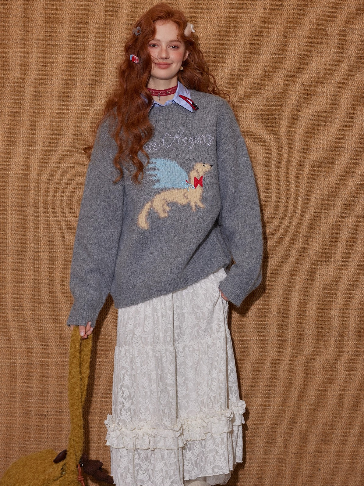A cozy jacquard sweater crafted from a soft wool-blend yarn with subtle elasticity for comfortable wear.