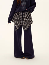 A two-piece sweat set cut from 100% combed cotton for a soft hand and stable structure. The sweatshirt uses an asymmetric shoulder line with paneled stripe detail and graphic print; dual-length sleeves add layered dimension while keeping movement easy. The matching wide-leg sweatpants drape straight for a clean, elongated look and comfortable everyday wear. Style the pieces together for a modern off-duty set or mix each with denim and knits for campus, travel, or casual days.