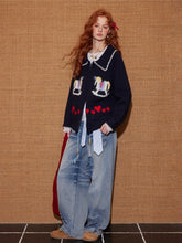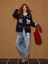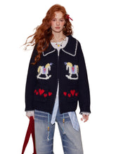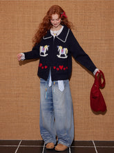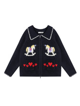 Contrast-Trim Horse Jacquard Knit Zip Cardigan