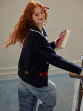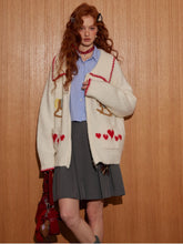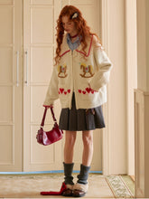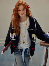 A retro-inspired zip cardigan that blends cozy softness with refined detailing. Made from a delicate wool-blend fabric, it offers a plush, skin-friendly touch with moderate elasticity and excellent warmth retention. The piece features a contrast-trim lapel collar and horse jacquard pattern that adds a touch of sophistication. Drop shoulders and a relaxed cut enhance the laid-back silhouette, while the functional zip closure and ribbed cuffs ensure comfort and versatility for everyday layering.