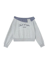 This off-shoulder sweatshirt blends American retro charm with modern feminine details. Designed with a relaxed cropped cut, it flatters the figure while enhancing the waistline. The plaid patchwork at the neckline and shoulders adds a layered effect, contrasted by floral embroidery at the chest for a delicate finish. Crafted from soft and breathable cotton blend, the fabric ensures comfort and ease of wear, making it a versatile piece for both casual and chic styling.