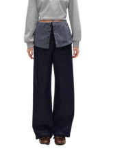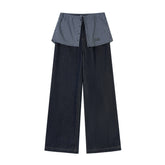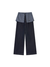These straight-leg jeans combine comfort with structured tailoring, crafted in a unique faux two-piece design. The fabric blend ensures durability while retaining softness and breathability, making them ideal for daily wear. The clean straight-cut elongates the silhouette, with a high-rise waistline that enhances leg proportions. The plaid patchwork waistband adds a touch of retro-inspired detail, highlighting individuality while simplifying outfit styling. A versatile denim piece that bridges casual functionality with contemporary fashion.