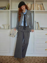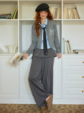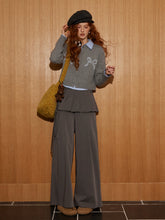 These wide-leg pants feature a unique layered pleated design that blends casual comfort with refined tailoring. Crafted from a smooth polyester-viscose blend, the fabric drapes fluidly while maintaining a crisp silhouette. The high-rise fit elongates the legs and flatters the waistline, complemented by the illusion of a two-piece overlay that adds structure and depth. The neutral grey tone enhances versatility—ideal for both relaxed styling and elevated everyday wear.