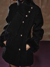 This elegant wool coat is crafted from 100% premium wool, offering natural warmth with a refined, structured finish. Designed with a sculpted hourglass waist, it gently contours the body while maintaining a clean, tailored silhouette. The detachable fringe-trim scarf adds styling versatility and enhances both warmth and visual layering. Finished with subtle golden buttons and removable fur-trim details at the cuffs, this piece balances timeless sophistication with modern femininity.
