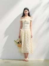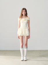 This off - the - shoulder halter top exudes a touch of tenderness and sensuality, with rich style layers. The cream - colored lace fabric features delicate and fine patterns, with a hazy transparency. It has an elastic knitted inner lining, enhancing the safety and practicality of wearing. The fabric is elastic, ensuring a comfortable and easy fit when worn. Small flowers bloom quietly, and vines grow unbridled, filling the top with vibrant life. The arc - shaped bust division with gathered pleats on the chest creates evenly textured and fine pleats. The two - side lace ribbons on the front neck are tied as halters, with fluttering bows that hide and show among the hair. The off - the - shoulder style can also be worn as a shoulder - hanging style, offering diverse wearing forms and making styling easier and more interesting. The slim and short - length silhouette modifies the body shape and elongates the proportion.