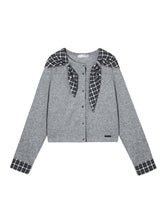 Wool Blend Plaid Tie Cardigan