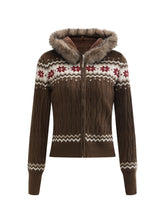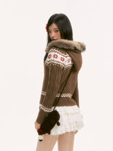 This cardigan features a classic Fair Isle pattern paired with a cozy hooded design for seasonal warmth and visual texture. The padded lining enhances insulation while keeping the silhouette balanced and comfortable. A soft fur-trimmed hood adds depth and a refined winter accent without overwhelming the knit structure. Designed for everyday layering, it works well with denim, skirts, or relaxed winter outfits.