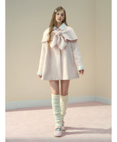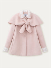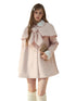 A premium wool-blend shell delivers soft warmth in a delicate blush tone, contrasted by an elegant detachable cape overlay. Tailored shoulders and adjustable waist ties refine the silhouette, while rose jacquard accents add an artisanal touch. Versatile for city layering or occasion dressing, it balances cozy comfort with polished structure. Practical side pockets complete a sophisticated, easy-to-wear outer layer.