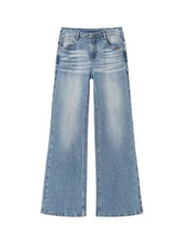 These straight-leg jeans are crafted from high-density cotton denim with a touch of elastane for comfort, featuring a natural mid-rise waist and a clean, structured silhouette that enhances leg proportions. The classic straight cut balances the hips and legs while maintaining a refined, everyday fit, complemented by subtle vintage washing and distressed detailing for added depth. Designed to sit smoothly at the waist without bulk, this style delivers a timeless look that works effortlessly across casual and styled outfits.