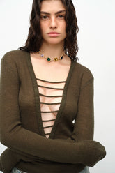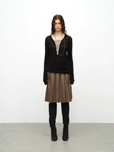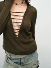 Black & Green Wool Handmade Drawstring Knit Pullover Sweater